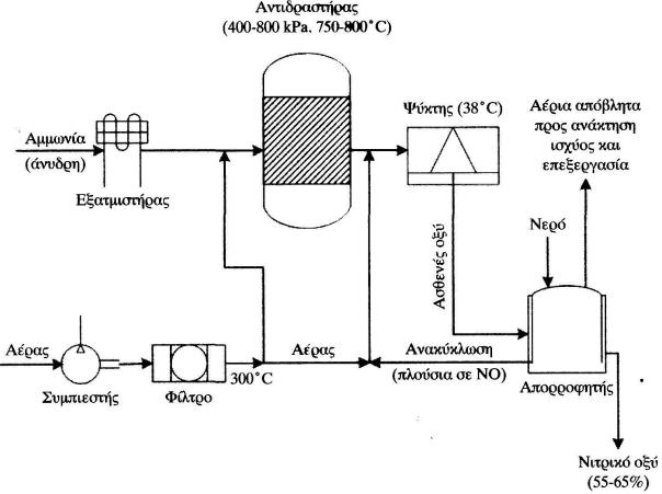 σε υψηλή πίεση της αμμωνίας προς οξείδιο του αζώτου (NO) με πέρασμα από